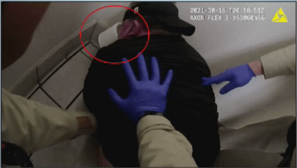 Body camera footage presented by the LVMPD’s Force Investigation Team (FIT) showed that Sommer was lying on the bathroom floor, yelling and squirming, several feet away from the officers as they discussed their plan to restrain him. The officers were planning to use ketamine to sedate Sommer once he was detained. However, in a clear state of mental distress the officers rushed into the bathroom stall and held Sommer down, attempting to get his hands behind his back and handcuff him.