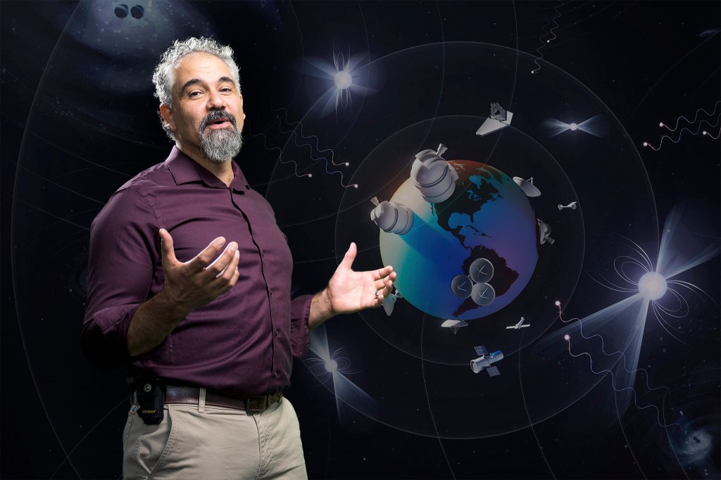 To understand gravitational waves, one can visualize space-time as a form of Jell-O, with massive objects causing ripples as they move through it. Jeffrey Hazboun from Oregon State University likens it to a wave passing through a cube of Jell-O, causing compression and expansion.