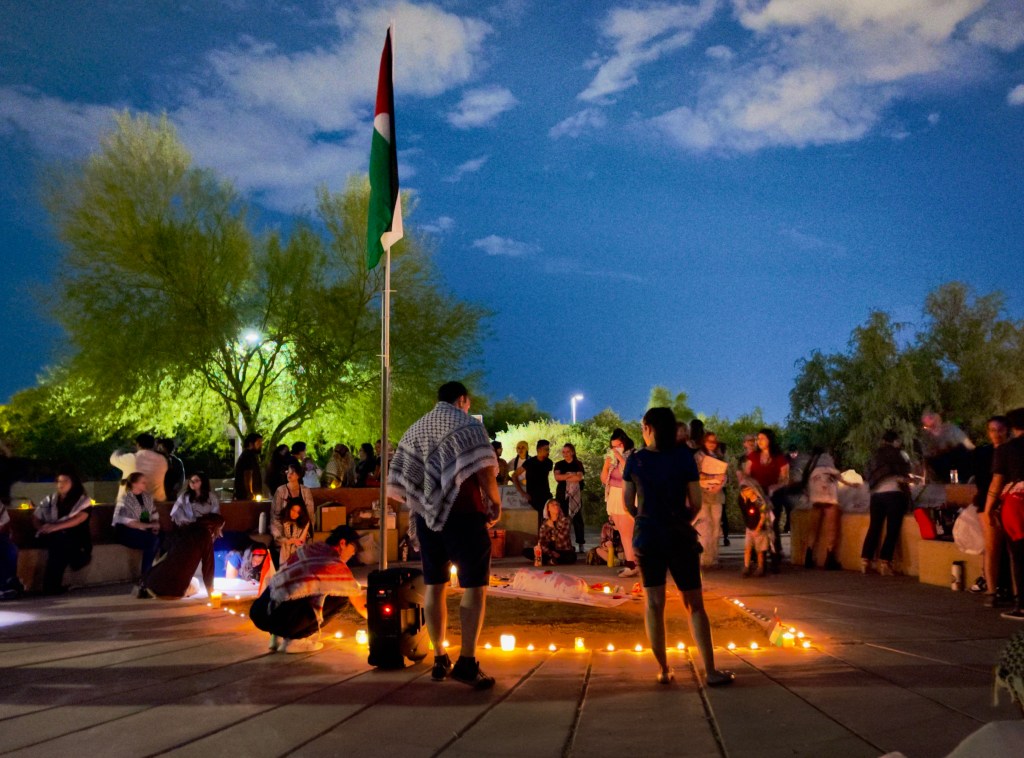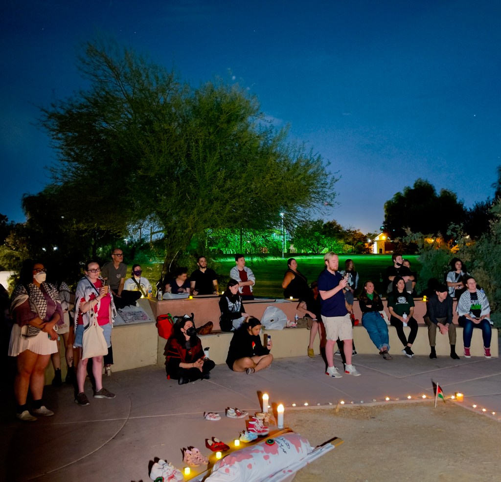 On October 7, 2024, as the sun began to set over Sunset Regional Park in Henderson, Nevada, the community gathered for a solemn vigil. They were organized by the Democratic Socialist Association of Las Vegas, Code Pink, Red Desert Collective, Party for Socialism and Liberation, and Student Justice for Palestinians (SJP) at UNLV. The event brought together people of different backgrounds to honor the victims of the ongoing violence in Gaza. Lanterns were lit and a minute of silence was observed, creating a quiet yet powerful moment of solidarity and mourning for the lives lost in a year marked by bloodshed and devastation.