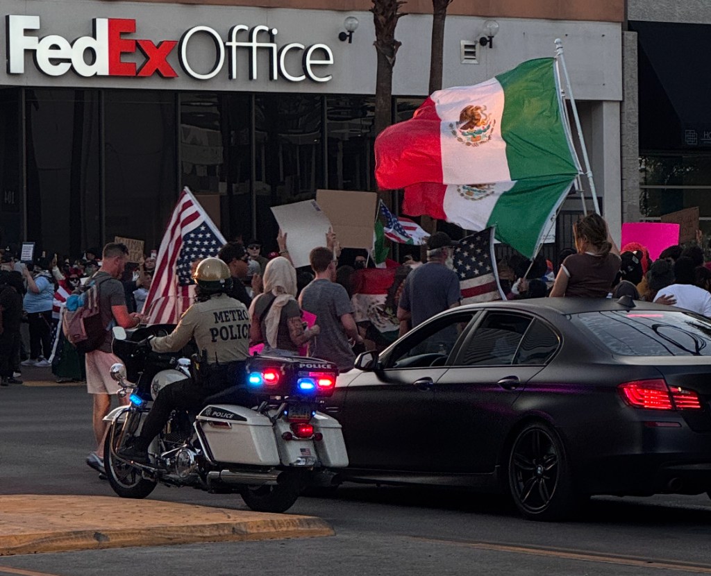 Tensions escalated after sunset. At precisely 9:02 PM, LVMPD posted on the social media platform X (formerly Twitter), declaring the assembly unlawful. The message was abrupt and left many wondering whether protesters were given sufficient time or notice to disperse. According to numerous firsthand accounts and social media videos, the dispersal order was not audibly heard on the ground until approximately 30 to 45 minutes after the online announcement. Yet, within minutes of the tweet, law enforcement began deploying tear gas and engaging in crowd control measures, including kettling and advancing in tactical formation. What had been a peaceful, lawful protest rapidly devolved into chaos, not from the protesters’ actions, but due to the swift and forceful police escalation.