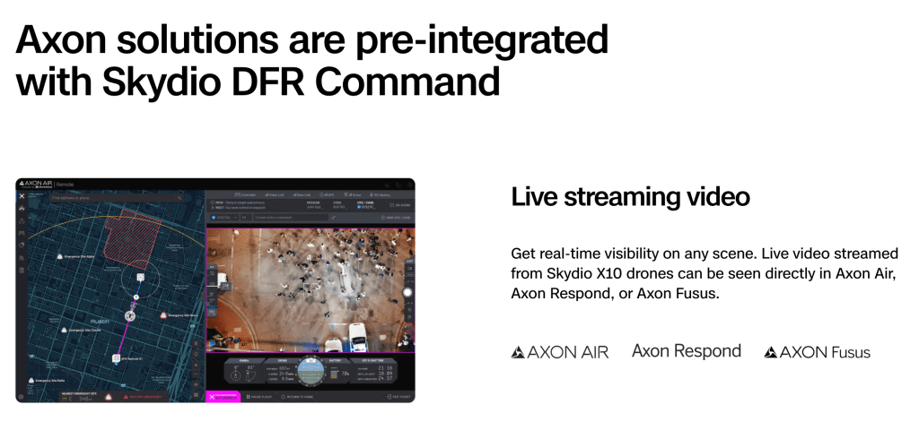 A critical axis of influence lies in how the drone infrastructure is financed and supplied. Skydio’s drones are central to LVMPD’s fleet, and through its partnership with Axon — the company behind body cameras, tasers, and evidence-management platforms — these tools are being integrated into a broader policing ecosystem. The result is a powerful data pipeline: drones, cameras, and sensors all feeding into centralized evidence repositories controlled by a small number of private firms.